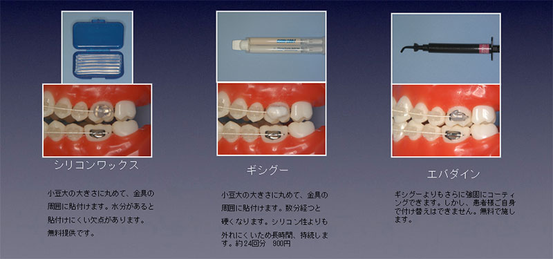 痛みを伴う場合があるので、金具と粘膜の干渉をブロックするために粘膜保護材を用意しています。